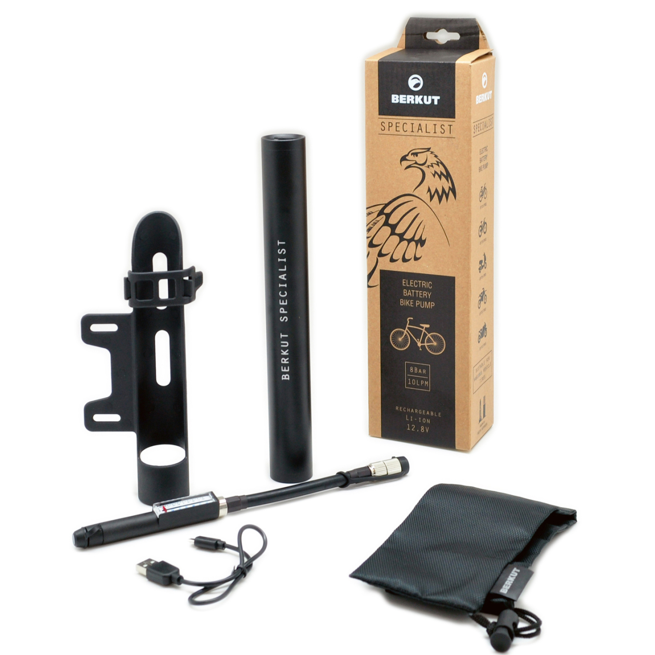 Berkut VL-1010 — это переносной велокомпрессор серии Specialist, который работает от встроенного аккумулятора. Зарядка аккумулятора происходит через разъем Micro USB 5V. Переносной электрический велонасос VL-1010 комплектуются надежным креплением на раму и снабжен уникальным линейным высокоточным манометром, удобно расположенным вдоль шланга насоса. В насос установлен яркий светодиодный фонарь, который поможет велосипедисту работать с устройством в тёмное время суток.