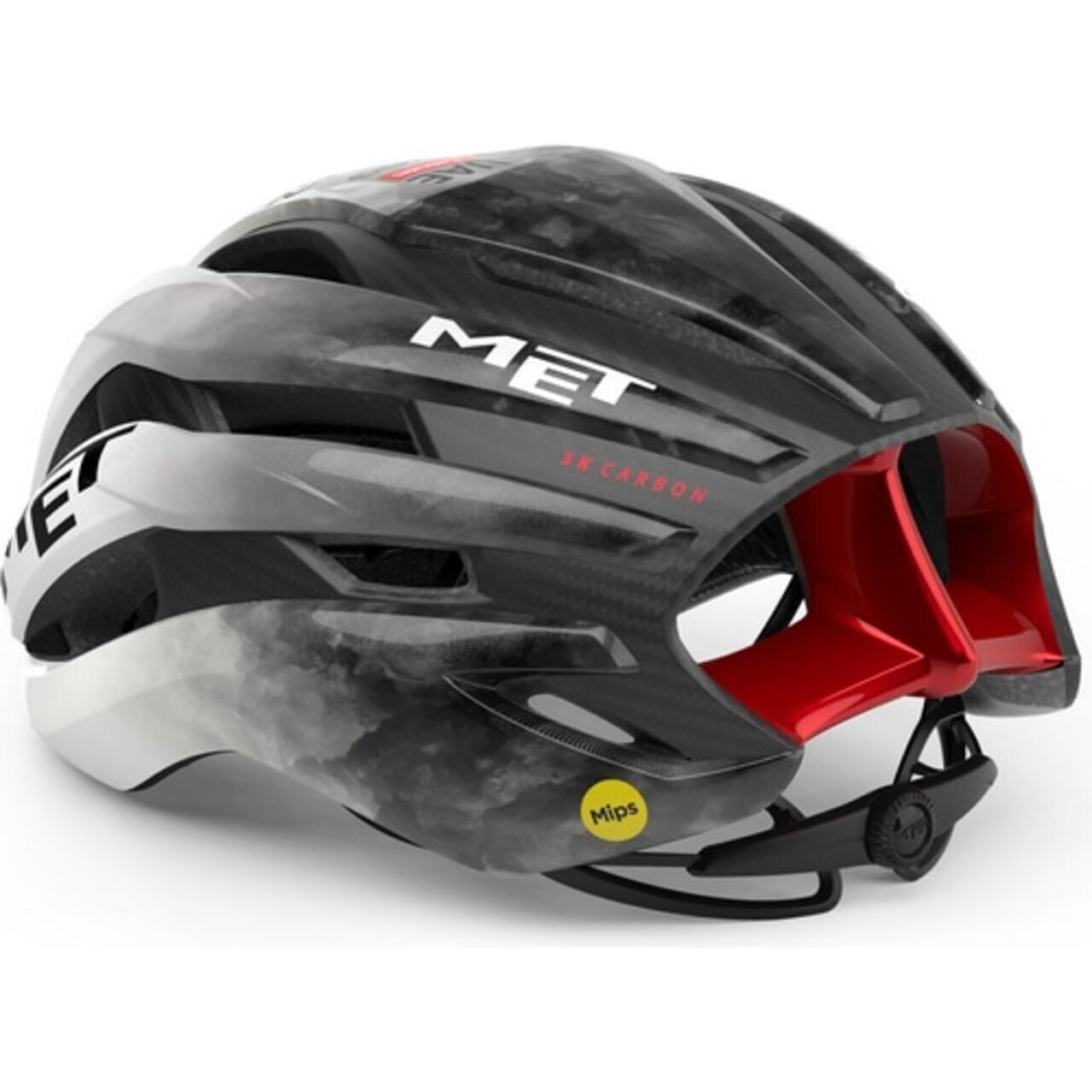 Шлем MET Trenta 3K Carbon UAE Team (2025) - прекрасное сочетание стильного внешнего вида благодаря оформлению в цветах команды UAE и защиты на шоссе. Модель обладает более высокой аэродинамикой, чем предшественники, благодаря нижнему трубчатому профилю в задней части, который был разработан с помощью специальных испытаний в аэродинамической трубе в лаборатории Virginia Tech. Благодаря системе SAFE-T ORBITAL FIT, ремень, охватывающий голову на 360°, не давит на череп. Данная система также отличается следующими особенностями: 4 положения для вертикальной регулировки, 2 положения для регулировки затылочной части, совместимость с хвостом «конский хвост», совместимость со светодиодной подсветкой MET USB. Модель выполнена с использованием технологии 3К Carbon Airframe для лучшей аэродинамики и снижения веса. За вентиляцию отвечает фирменная система 3K Airframe от MET, которая работает в связке со специально расположенным выпускным отверстием, обеспечивая постоянный поток воздуха через шлем, не создавая сопротивления ветру. За безопасность отвечает технология MIPS Air Node, которая сводит к минимуму травмы головного мозга при падении. Работает система за счет возможности внешнего слоя шлема смещаться на 10-15 мм относительно головы и гасить энергию удара, что прямо имеет отношение к специфике падений и повреждений при езде на велосипеде.
