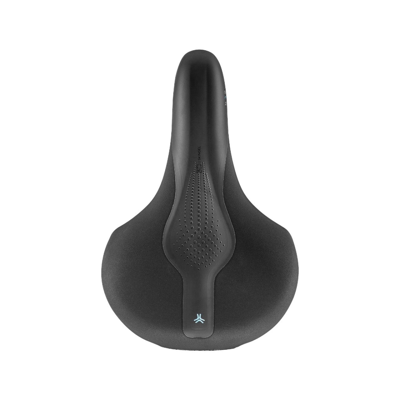 Анатомическая конструкция, гелиевая вставка, технологии 3D Skin Gel, Body Contour, Integrated Clip System, Central reservoir, Curva Suspension; Для седалищных костей с шириной 11-13 см.